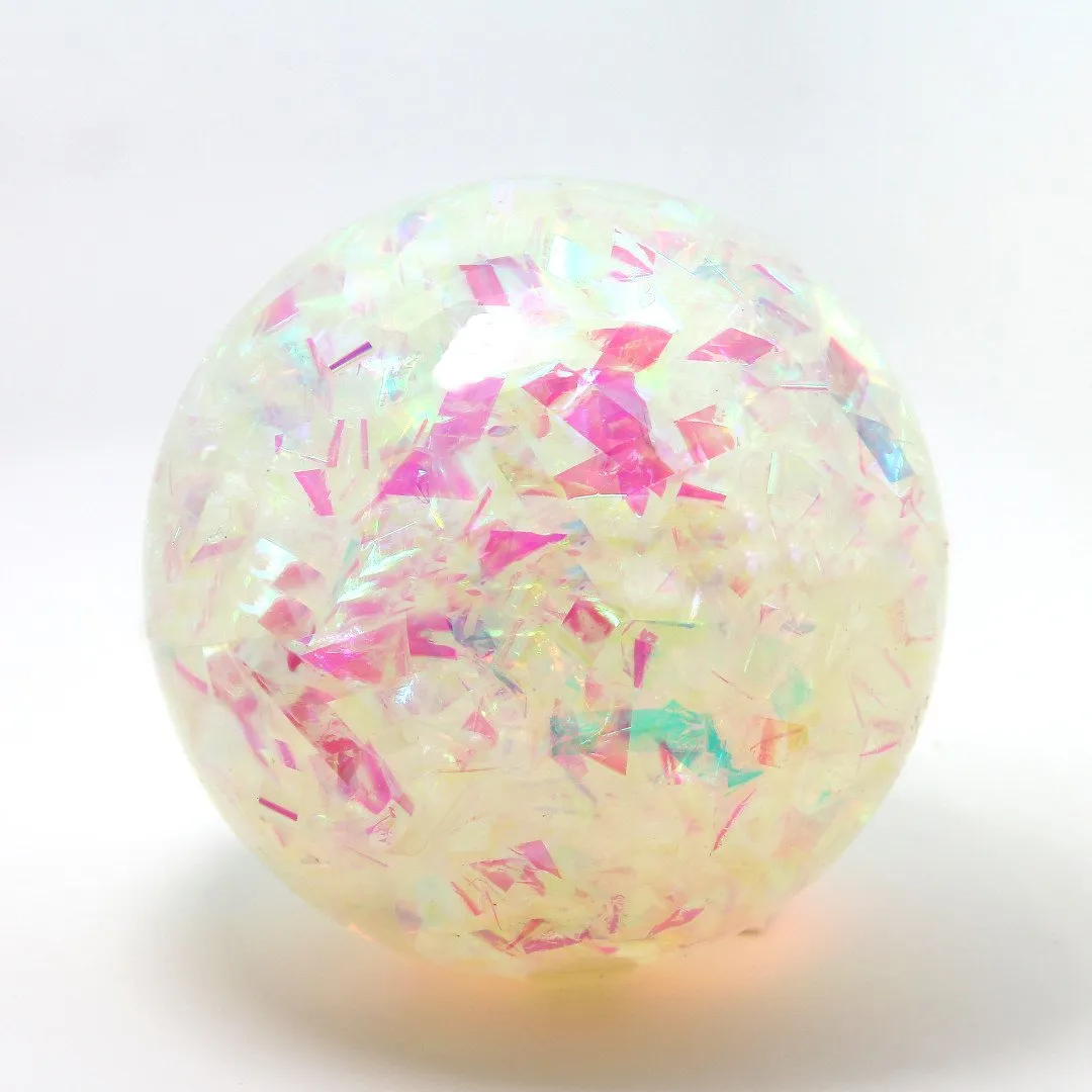 - Beroligende leg: Det langsomme bevægelsesmønster af glimmerstrimlerne skaber en afslappende og beroligende virkning, hvilket gør bolden ideel til både aktiv leg og afslapning.
