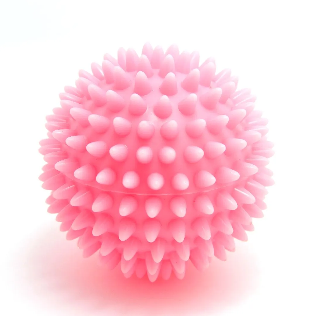 Sansemotorisk Stimuli: Boldens taktile overflade hjælper med at stimulere barnets taktile sans, hvilket er en vigtig del af sansemotorisk udvikling. Ved at røre ved boldens piggede struktur lærer barnet at forstå og reagere på forskellige teksturer og fornemmelser.